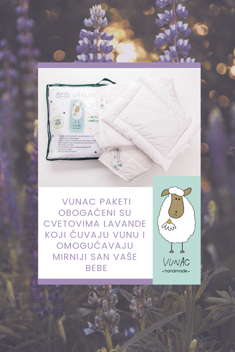 U svakom paketu Vunac proizvoda nalazi se paketić cvetova lavande koji čuva vunu i čiji miris se dugo zadržava na proizvodima, čineći bebin san mirnijim.
